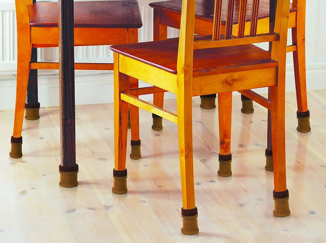 Keep your floors smooth and scratch-free from furniture legs with the Furniture Booties. The soft polyester and spandex blends allows chairs to slide on the floor both quickly and quietly. The stretchable material allows a one-size-fits-most capability for tables and chairs, while its stylish design allows them to easily coordinate with most furniture legs.
