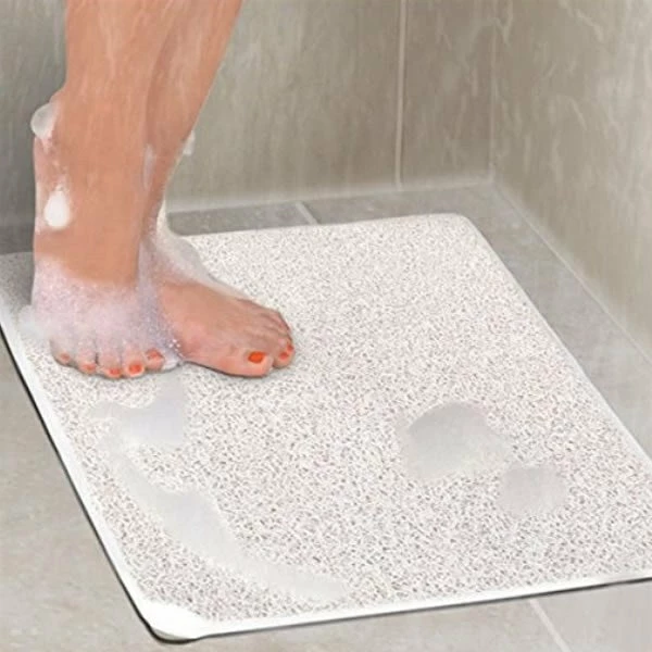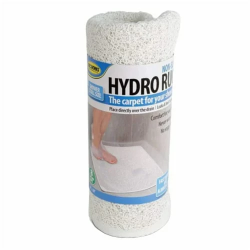 No more slipping on hard and wet floors! Avoid soggy mats and damp floors with this fast drying non-slip bathroom rug. Perfect for any size shower stall, this rug is equipped with super soft and comfortable fibers that feel great and easy to clean. Scrub your feet without bending since the Hydro Rug also functions as a loofah for your feet. Four suction cups ensure that the rug stays securely in place. Measures approximately 28″ x 17″.