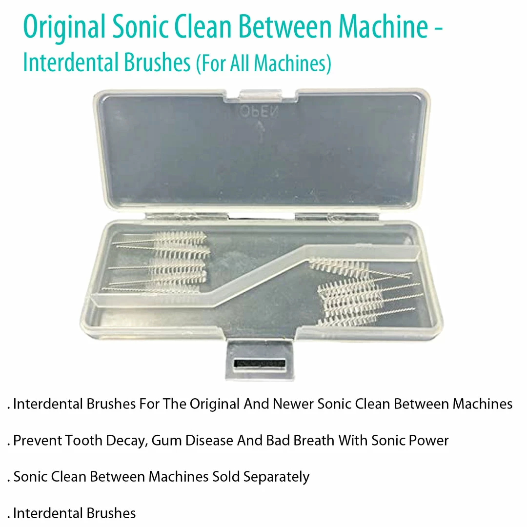 Interdental Brushes for All Sonic Clean Between Machines- Both Versions Interdental brushes for the Original and Newer Sonic Clean Between Machines Includes: 10 x Sonic interdental brushes with patented clicktip in a cassette case- designed by a dentist to a clean inbetween teeth where flossing cannot reach Item comes in mail order packaging Sonic Clean Between Machine SOLD SEPARATELY. *Please note that this is for BOTH Newer and Original Sonic Clean Between Machines. Replacement toothbrushes for the older original and newer versions are available in other listings