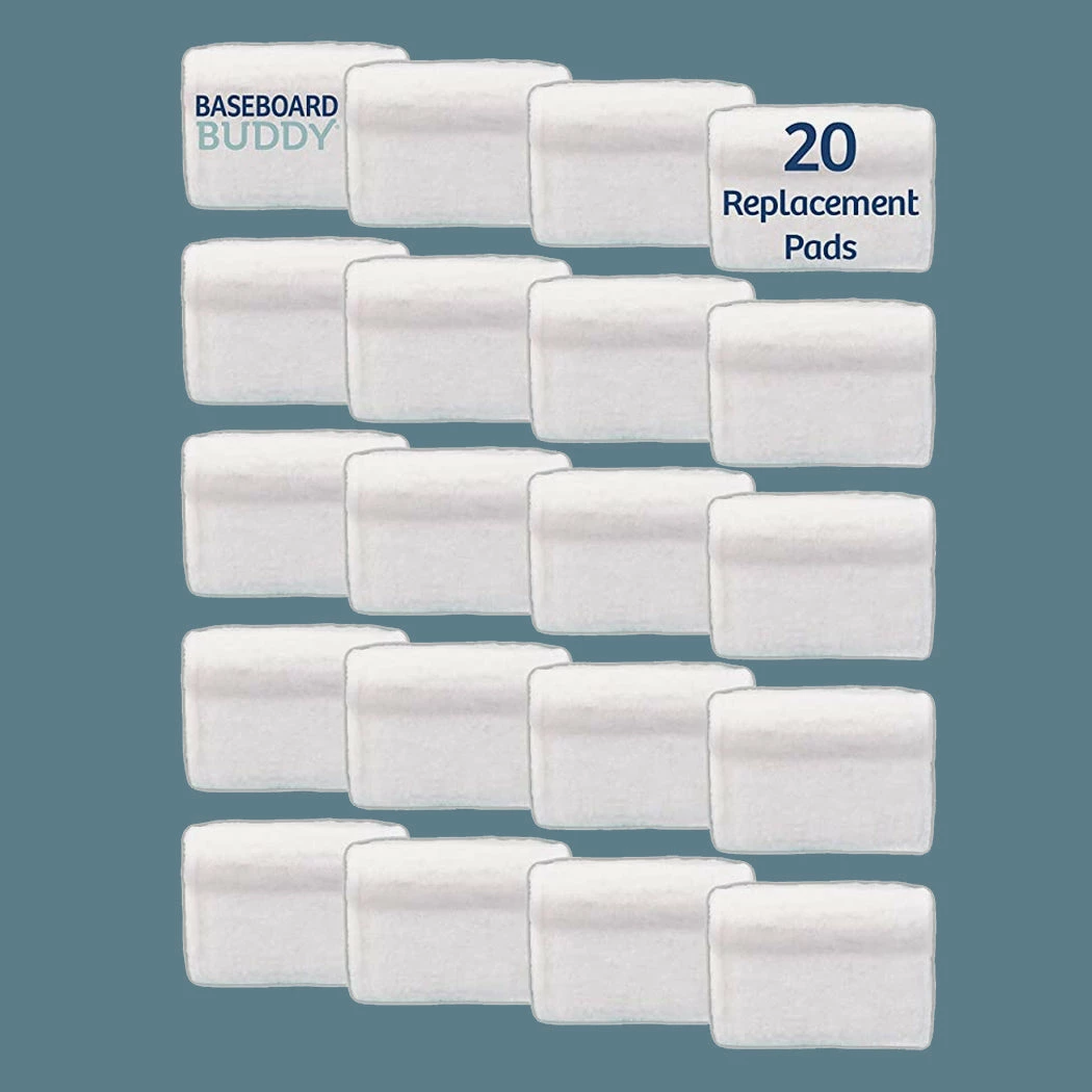 Use the cleaning pad dry for simple dusting or easy dirt removal. Use it wet to clean stubborn dirt and make those baseboards or molding look shiny new! Rinses clean. Comes with 20 reusable pads. Compatible with baseboard buddy and similar cleaning products. Extension pad: 4”L x 4”W.