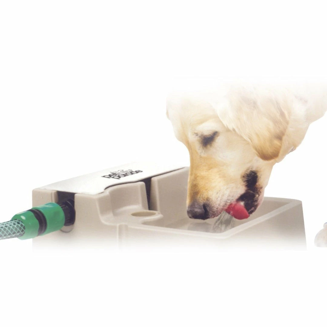 Connects to a garden hose or a water bottle (for indoor use). Automatic pressure shut off to avoid spillover. Ideal for dogs, cats, birds, etc. 2 liter bowl capacity