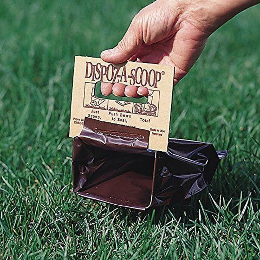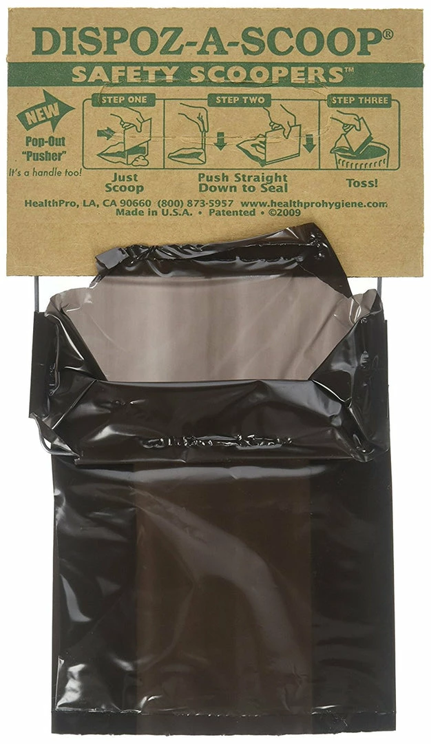 Cleaning up pet litter has never been easier. Scoop waste into this convenient bag (using the metal edge), press unit against the ground to seal, and the waste is ready for proper disposal. Useful when walking your pet, cleaning up your yard, or traveling. Dispoz-A-Scoop is completely sanitary and features a patented, self-sealing closure to ensure clean, odor-free disposal. Compact enough to fit in a pocket or purse. No touch, no odors, no problem! Scooper (6″ L x 4-3/4″ W) is large enough to use for larger dogs. In cases where waste might be more than average, two bags can be used. The Dispoz-A-Scoop bags have an airtight, waterproof seal, so if the bag gets wet, durability is not affected. Finally a hassle free, environmentally friendly solution to pet pollution! Made in the U.S.A. Please note that these come mail order packaging (bulk packed) and not in a retail box.