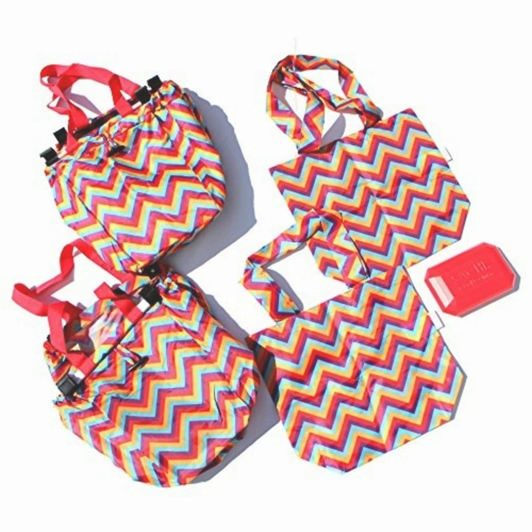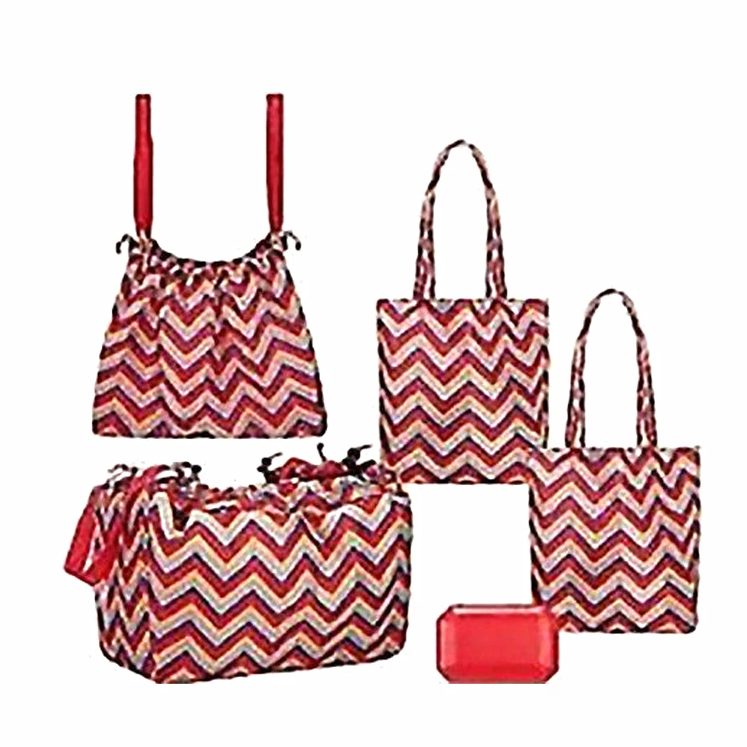 TVTimeDirect Sachi Shop Pack Go Market Totes Grocery Bag 5 Pce Set Red Chev