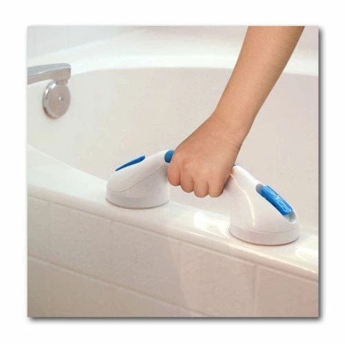 Ideaworks Safety Grip Handle w/ Color Change Safety Indicator — This safety handle will assist you to get in and out of a slippery bathtub. Two suction cups will secure this handle on the side of your bathtub or shower wall and allow you to get a good grip. Release the lever to remove the handle and make portable for travel. Fits any tub or shower Helps prevent dangerous slips and falls Unique color change safety indicator Extra stability where needed Mounts on non porous surface No homes, screws or tools required Releases with a flip of a lever