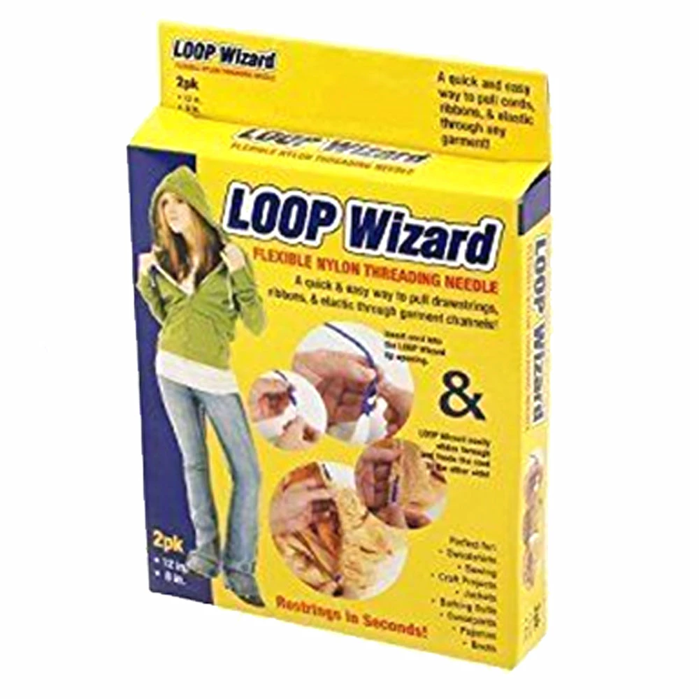 The quick & easy way to pull drawstrings, ribbons, ties, shoelaces and elastic back through the holes/channels of your clothing and other garments. Comes with two LOOP Wizard pieces – One 8″ and one 12″.