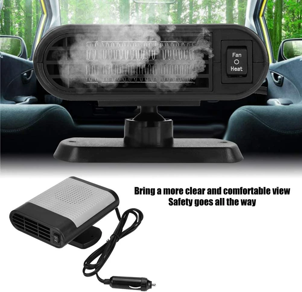 The heater or fan will blow instant heat or cool air, so as to warm up / cool down your car within seconds.With air purification, purify the air inside the car every 7 minutes.With a high temperature radiating vent, warm within 30s, easy and convenient to use.Useful for speeding up demisting and defrosting.Humanized design,with air purification, environmental protection and practical, low noise, energy saving.Overheat protection, thermal switch, no open flame, no damage to the battery, safe and reliable.With a large vents, warm your car interior space and defrost quickly.360° rotating holder, adjust to your ideal angle.Easy to use, Just plug it into your cigarette lighter socket.Circuit made of lengthened and strong copper cable, heats efficiently, no harm to car battery or car circuit.Packaged Includes:
