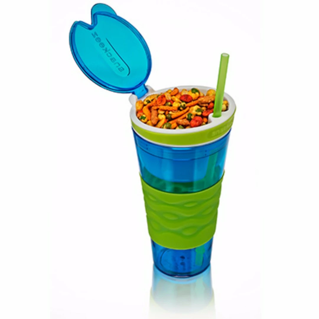 TVTimeDirect Snackeez 2-in-1 Snack & Drink Cup (Blue/Green) 24oz Kitchen