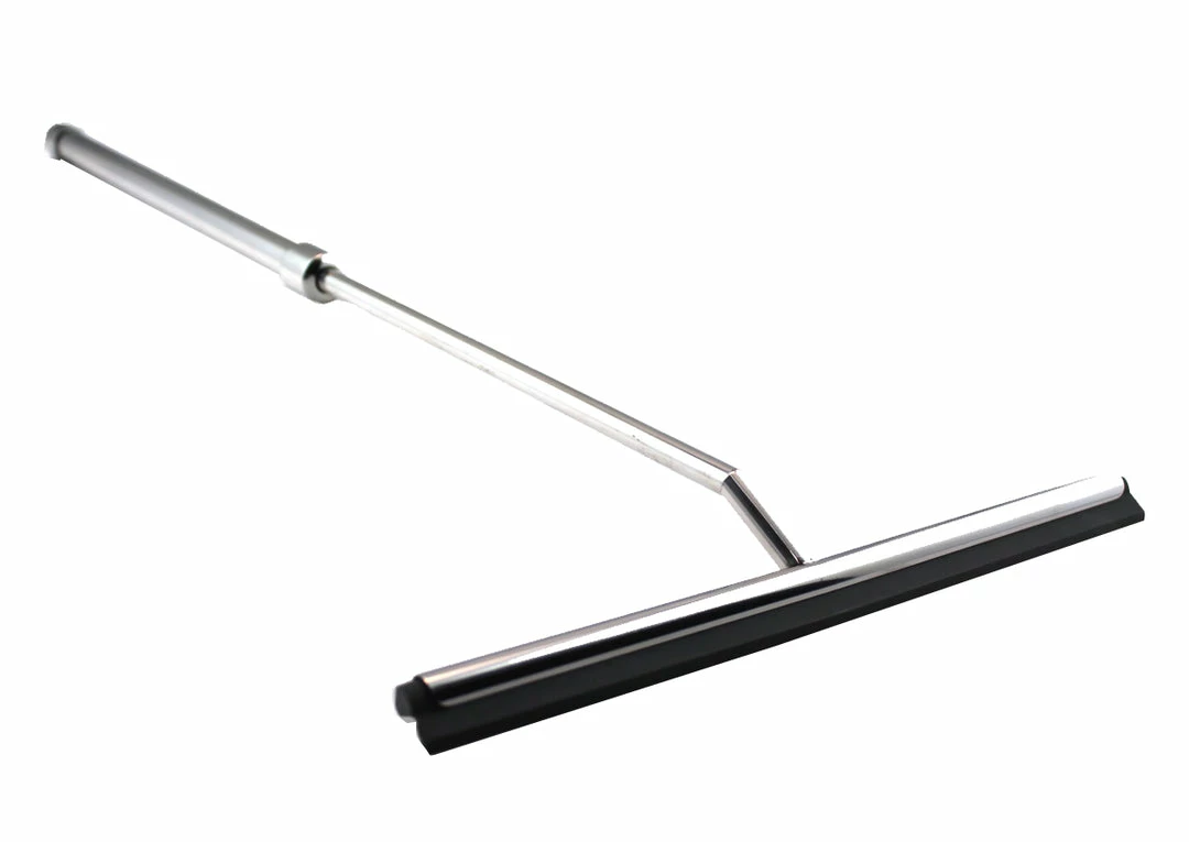 10″ Black and Silver Stainless Steel Shower Squeegee with Extendable Telescoping Handle. Stainless steel shower squeegee with telescoping handle. Can be used on glass, tile, ceramic and etc. Recommended both for indoor and outdoor use