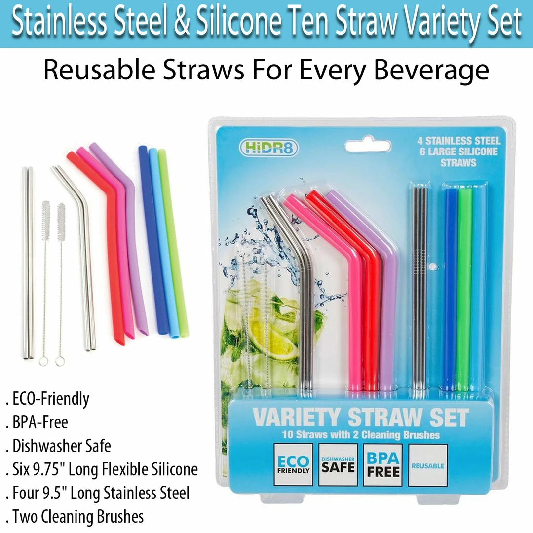 HiDR8 Stainless Steel & Silicone Ten Straw Reusable Variety Set