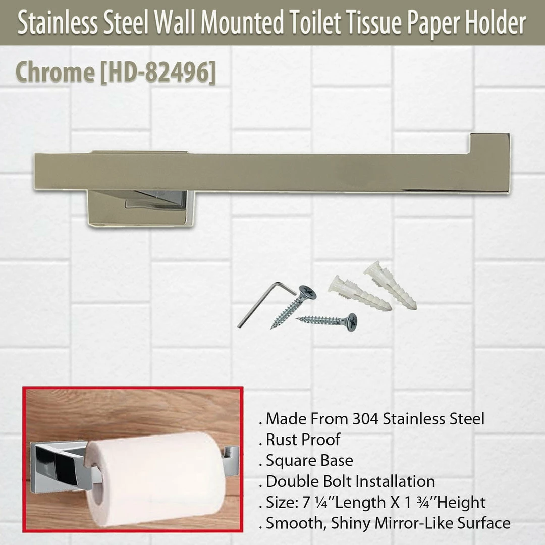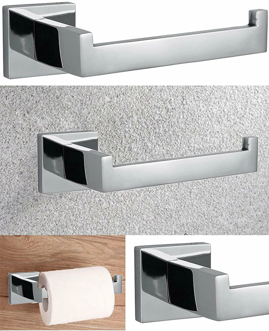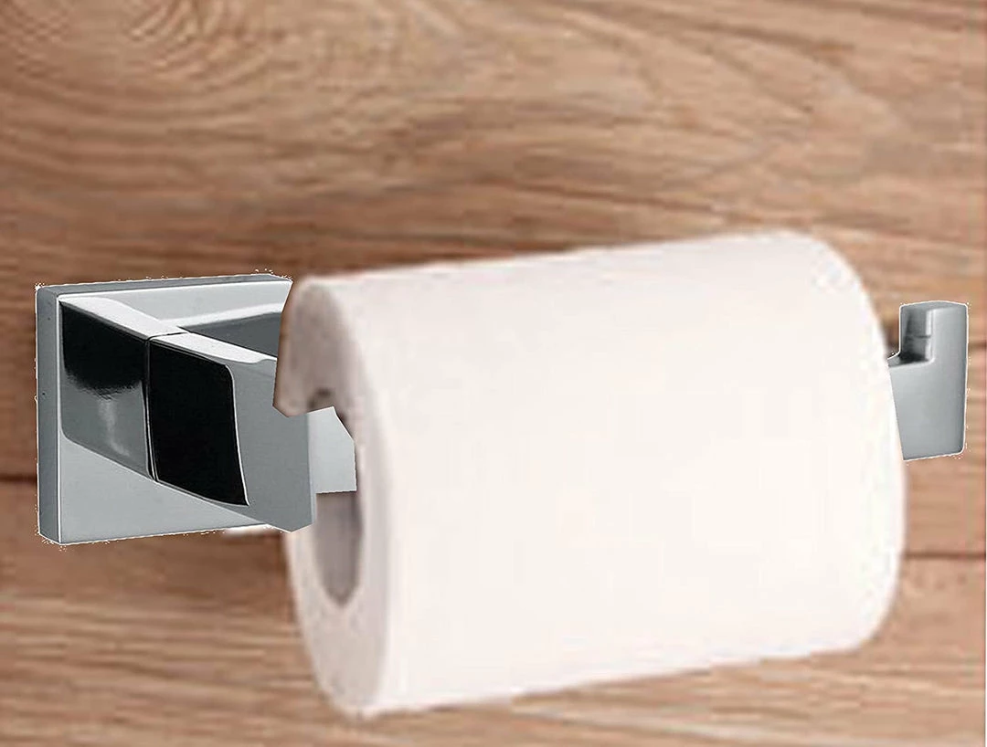 Toilet paper holder with square base and double bolt installation ensuring durability and dependability.