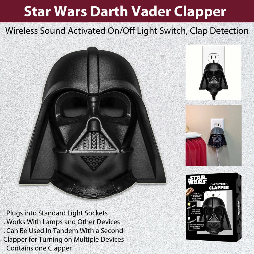Star Wars Darth Vader Clapper – Talking Darth Vader Clapper, Wireless Sound Activated On/Off Light Switch, Clap Detection, Perfect For Kitchen/Bedroom/TV/Appliances, 120 V Wall Plug, Smart Home