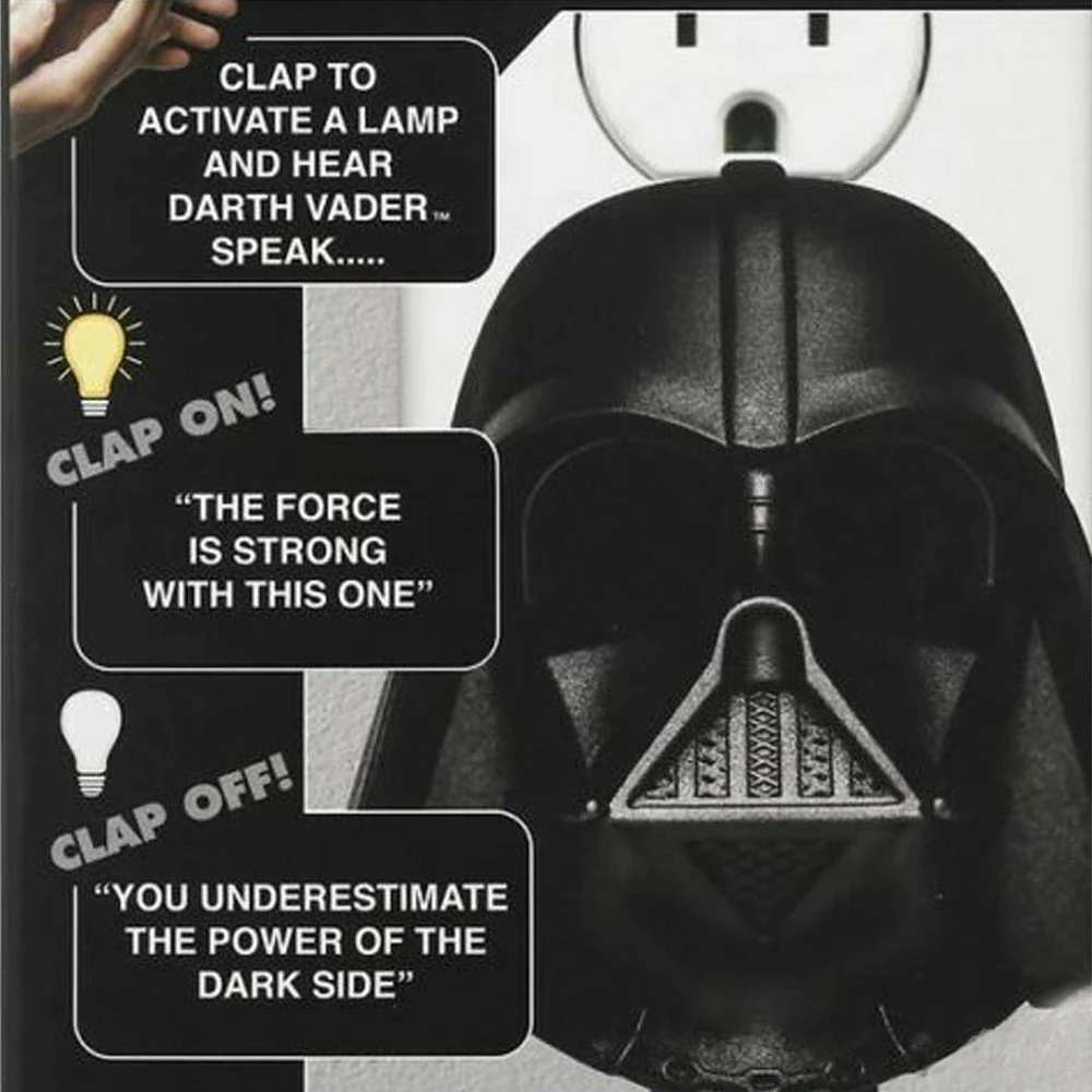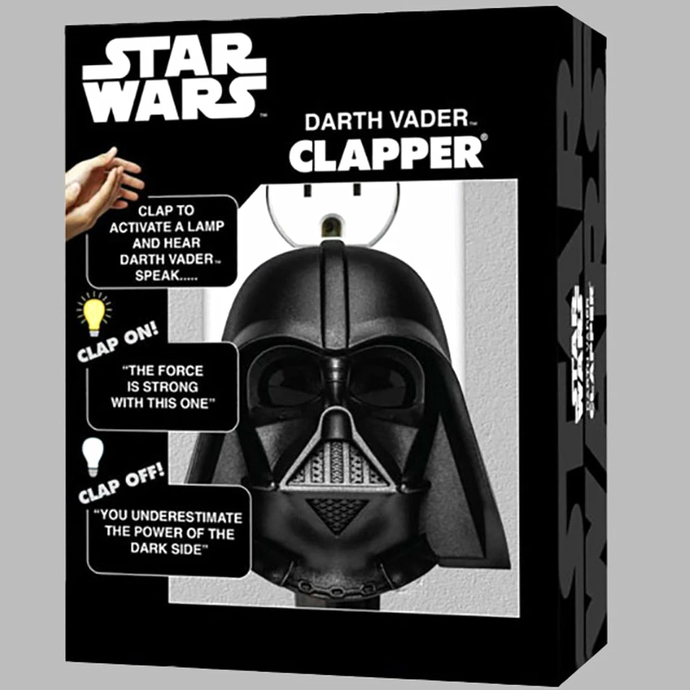 The original and affordable home automation – now comes the Darth Vader Clapper! Turn on or off your appliance (such as a lamp) by clapping your hands! Hear Darth Vader speak “The Force is Strong with this one”.Clap twice again and hear Darth Vader speak “You underestimate the power of the dark side”.