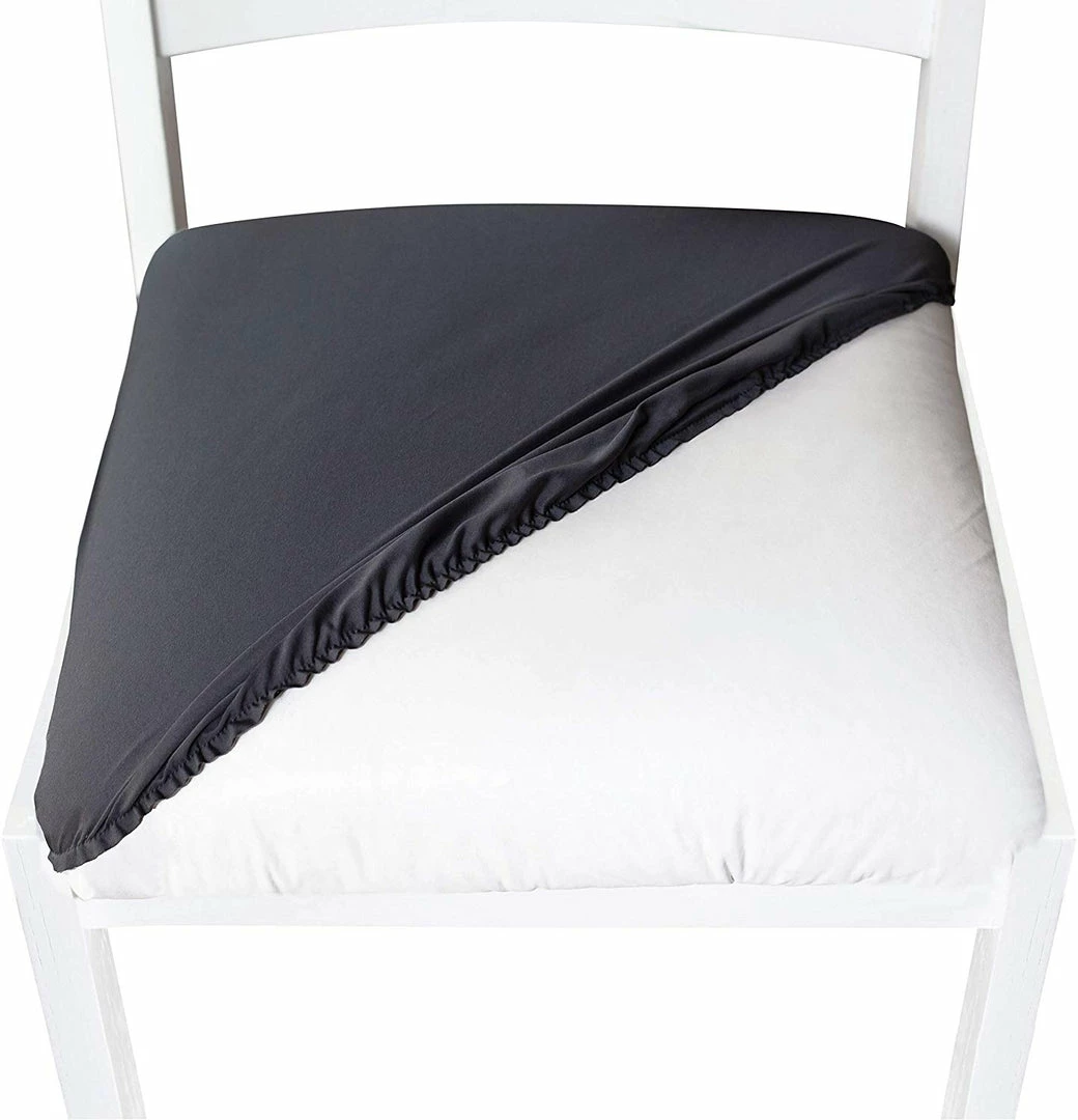 Chair covers stretch to fit oblong, square, round shaped chair seats. Hides wear and tear, rips, and tattered edges. Elastic edge holds cover securely in place. Fits office chairs, dining room chairs, bar stools, patio chairs, and more. Machine washable.