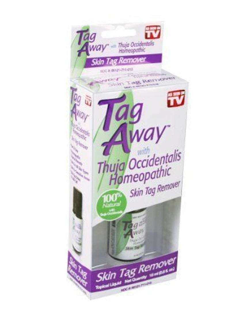 Tag Away Skin Tag Remover With Thuja occidentalis Homeopathic. Remove skin tags the all natural way. Tag Away Skin Tag Remover is a homeopathic, topical remedymade from all-natural plant extracts that help eliminate those harmless skin overgrowths without any pain. Tag Away Skin Tag Remover removes skin tags the all-natural way with its special formula that contains natural plant extracts. Safe for Sensitive areas Dries & Falls Away? Works in 3-8 Weeks Fast and easy Homeopathic topical remedy Includes: 1 x Tag Away Skin Tag Remover (0.34 Fl oz bottle)