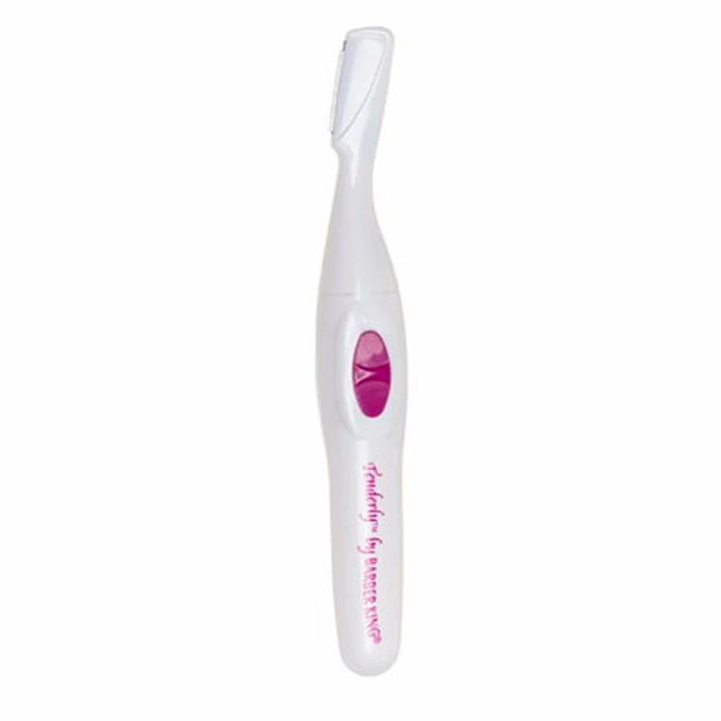 Barber King Tenderly Hair Trimmer Trims Hairs in Hard to Trim Places. Great for Eyebrows, Upper Lip, Chin and Neck. Gently remove the downy hairs of the face and neck with the Tenderly by Barber King. Unlike a man’s razor which requires water and shaving cream, the Tenderly is specifically designed for a woman. Its hypoallergenic blade quickly and easily snips the fine hairs of the upper lip, chin, neck and jaw line without ever touching the skin. Make-up will go on smoother and appear absolutely flawless. Waxing is messy and painful, but Tenderly is even gentle enough to trim away unwanted hair around sensitive areas, such as moles, where plucking is forbidden. So small and discreet, Tenderly easily stores in a make-up bag or purse, for quick touch-ups on the go. Specially designed for women, use Tenderly to trim away downy hairs from: Upper edge of the eyebrow, upper lip or nape of the neck. Safety design keeps blade away from direct contact with the skin! (Dimensions: 6.5 in. length ) Includes cleaning brush and instructions.Dimensions: 6.5 in. x1 in. x1 in