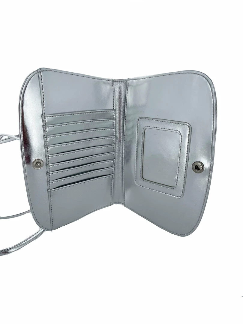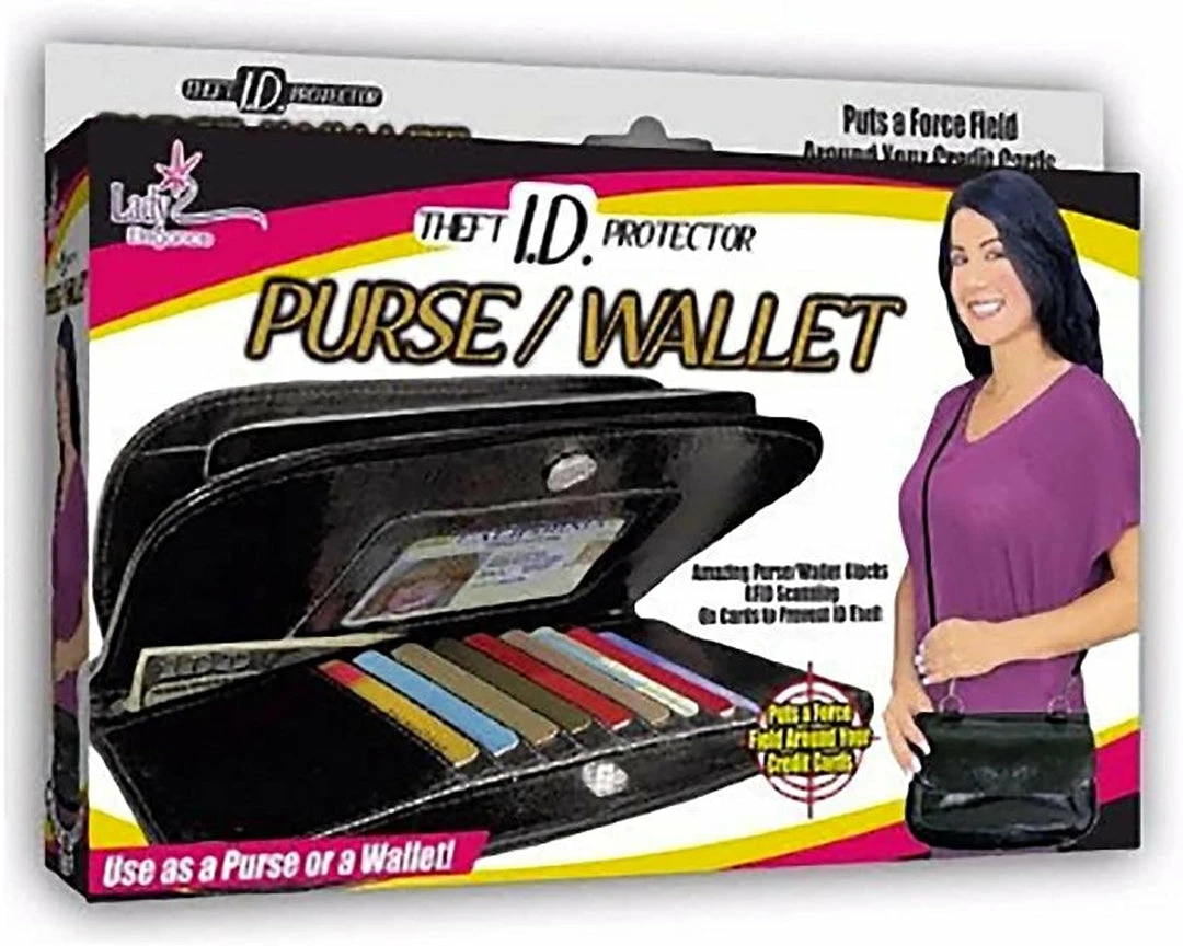 Lady Elegance Theft ID Protector RFID Purse and Wallet combo – Silver Prevent identity theft! Amazing Purse and Wallet blocks RFID scanning of your credit cards. Puts a force field around your credit cards. Removable shoulder strap. USE AS A PURSE or WALLET. Ultra-thin & Ultra durable. Resistant to corrosive materials such as salts, acids, seawater and more. Virtually indestructible purse/wallet feels like silk.