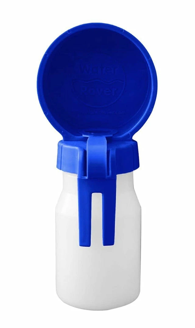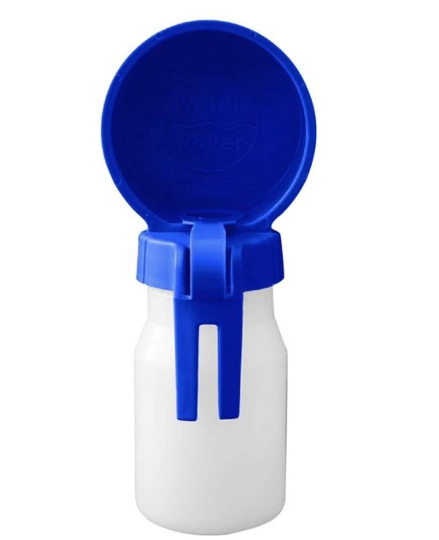 Water Rover makes it easy for pet owners to take water with them wherever they go. With its durable, lightweight water bowl and attached bottle. Water Rover is simple to use. Just unplug the bottle, lay it flat, and the water will automatically flow into the round bowl. Tip the extra water back into the bottle, replace the plug, and clip the Water Rover back onto your belt or waistband
