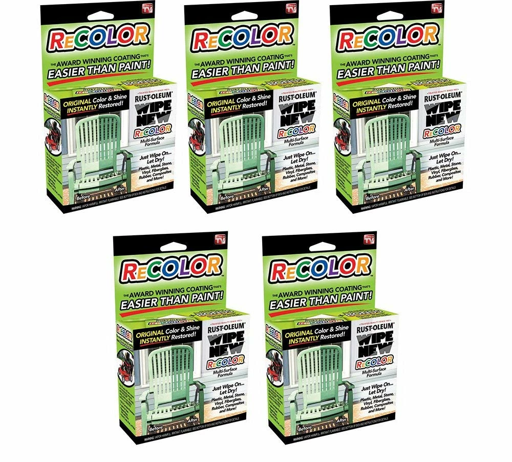 ReColor by Wipe New: a wipe-on clear coat with significant cost and time saving advantages over paint! It restores surfaces to the original color for a perfect match every time and the wipe-on application means no messy paint drips, brush marks or overspray. ReColor by Wipe New provides a perfect factory finish to any surface in just minutes for less cost per square foot than paint. ReColor’s performance is backed by an award winning brand known for producing innovative products having long lasting results! Includes: 5 Wipe-it Wipes Infused with Wipe New reCOLOR and 1 Pair Nitrile Gloves