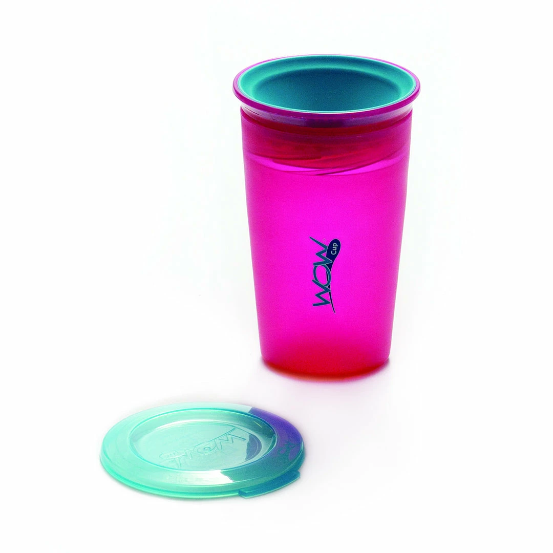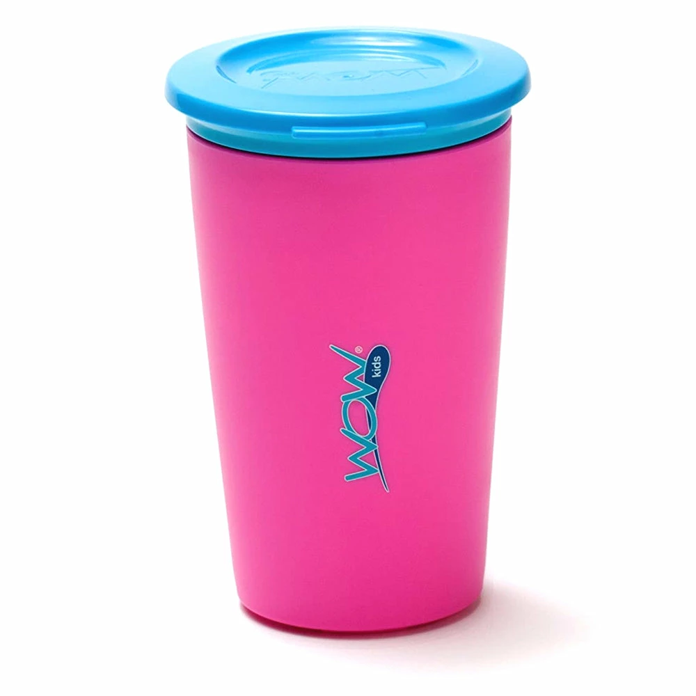 TVTimeDirect Wow Cup For Kids Original 360 Sippy Cup, Pink With Blue Lid, 9 Oz TWO PACK